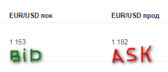 Вспомните …мы подходим к обменному пункту и видим две цены, то есть :